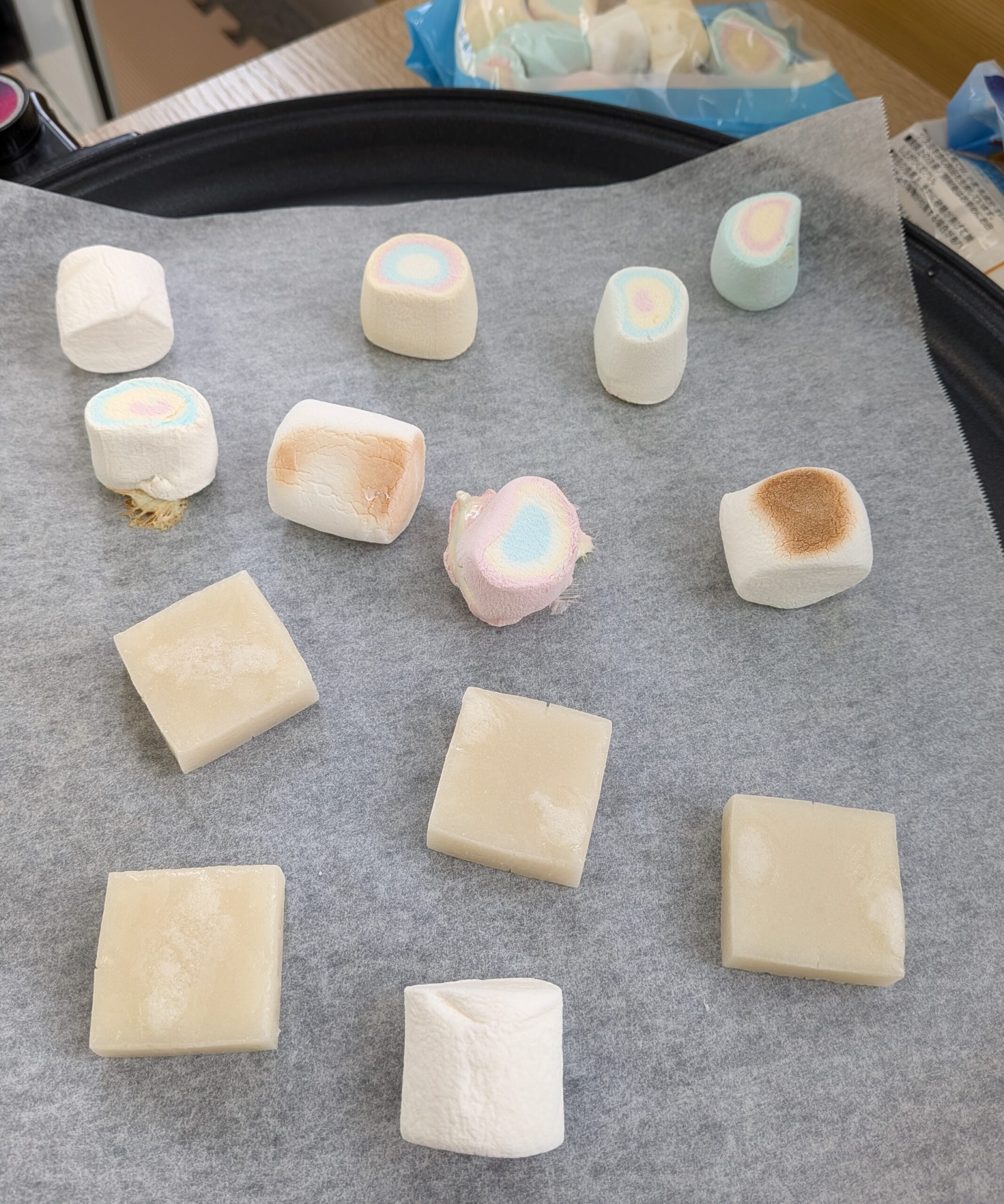 お昼ご飯は、持参したお弁当の他に、ホットプレートでマシュマロとお餅を焼いて食べました。