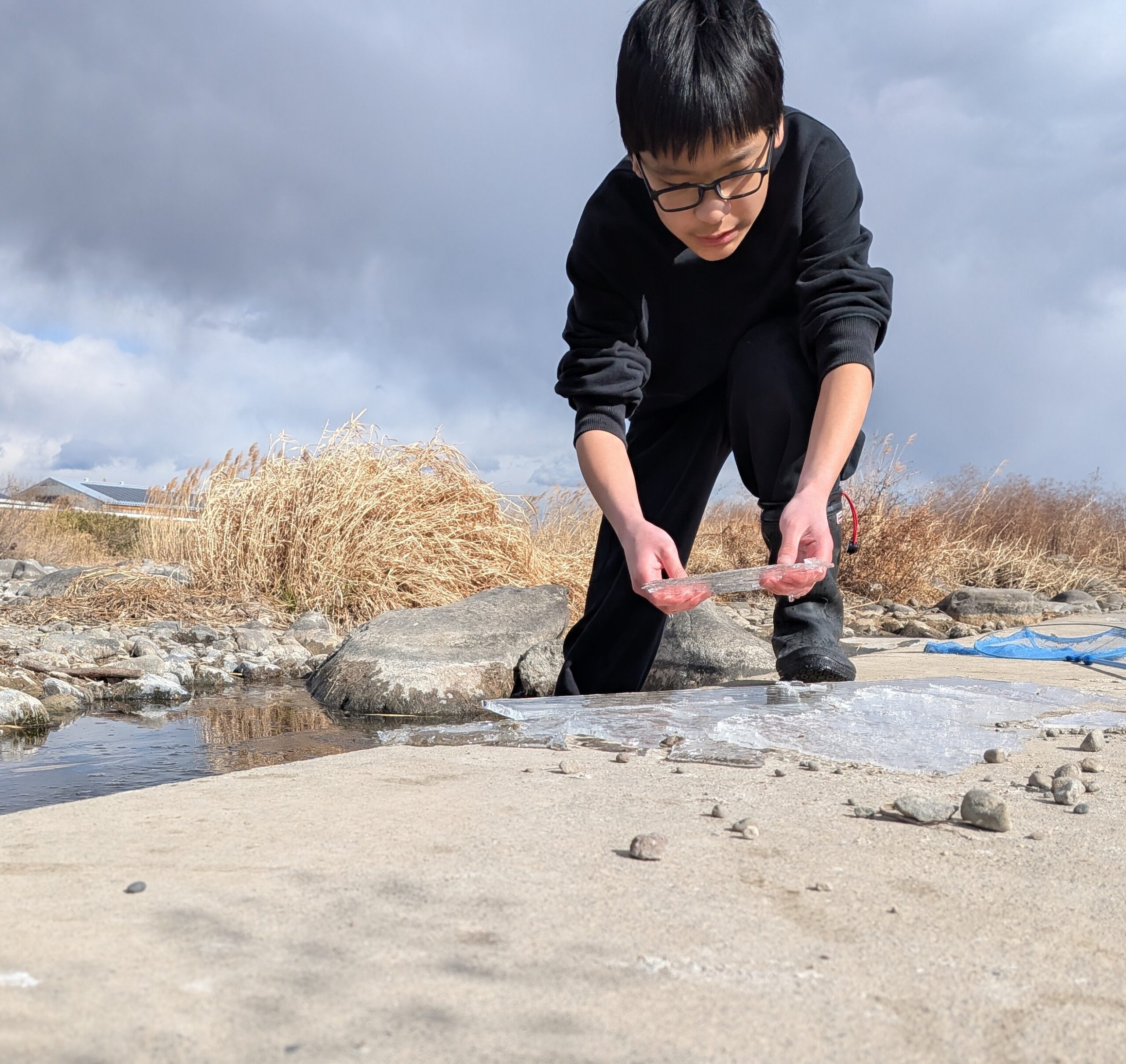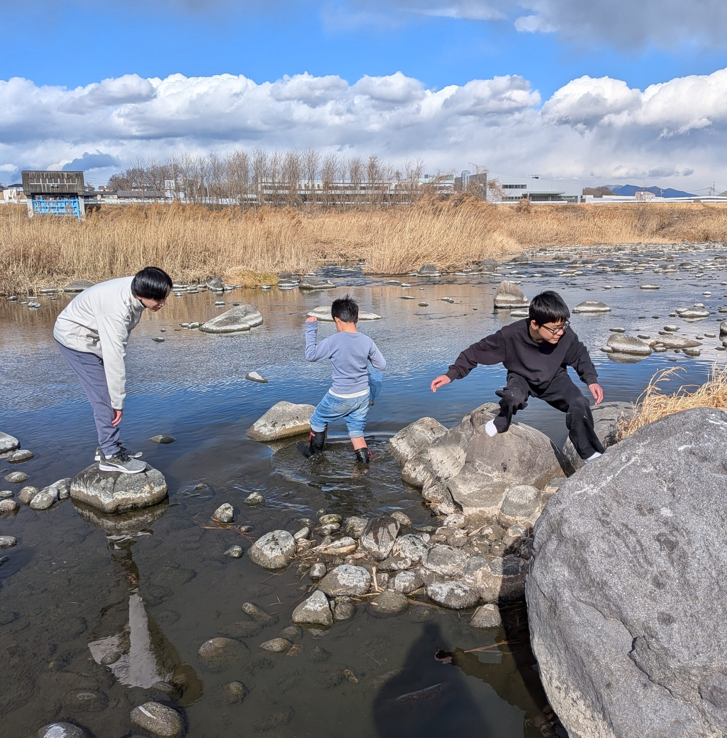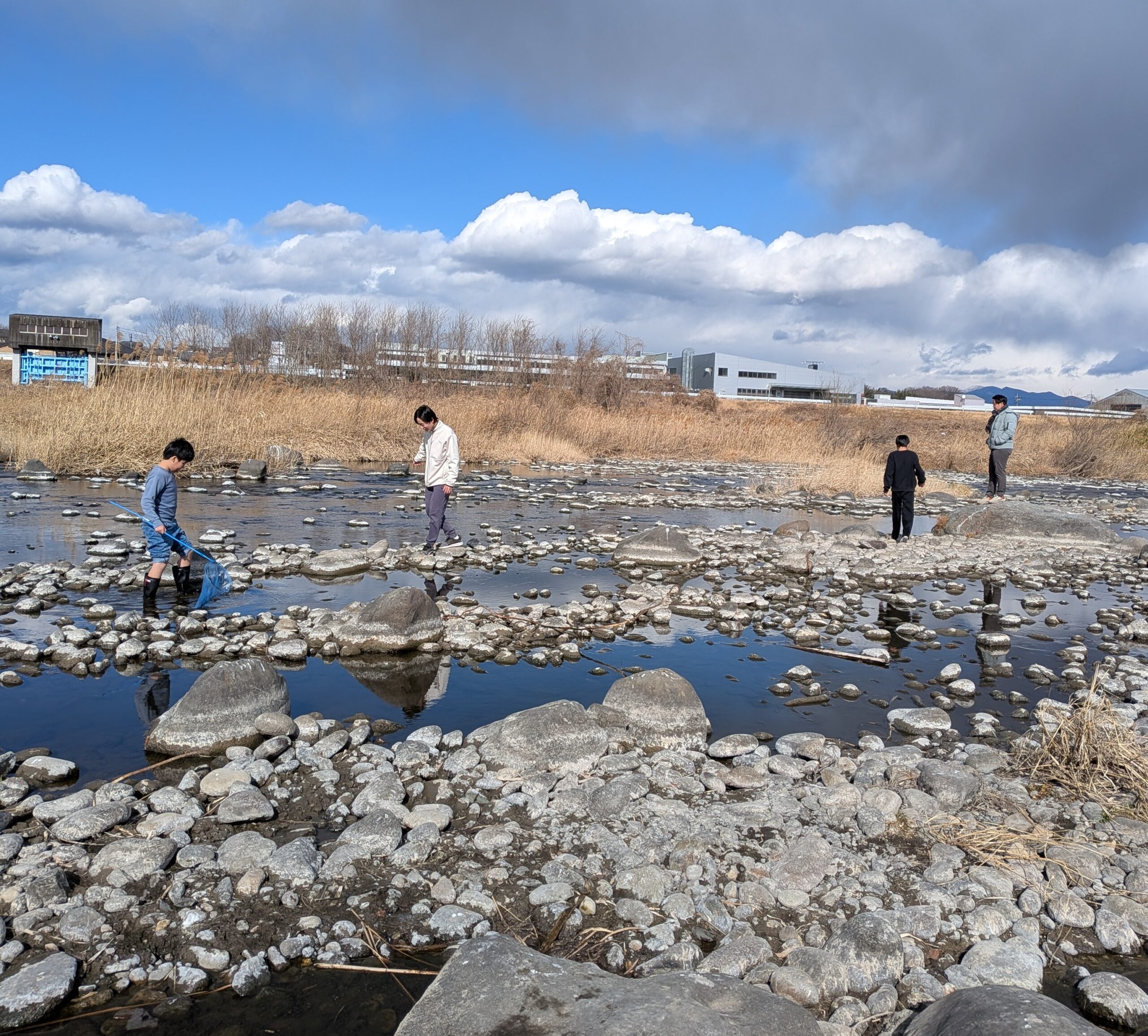 午後は河原に行って、飼っている魚の仲間を見つけに行きました。