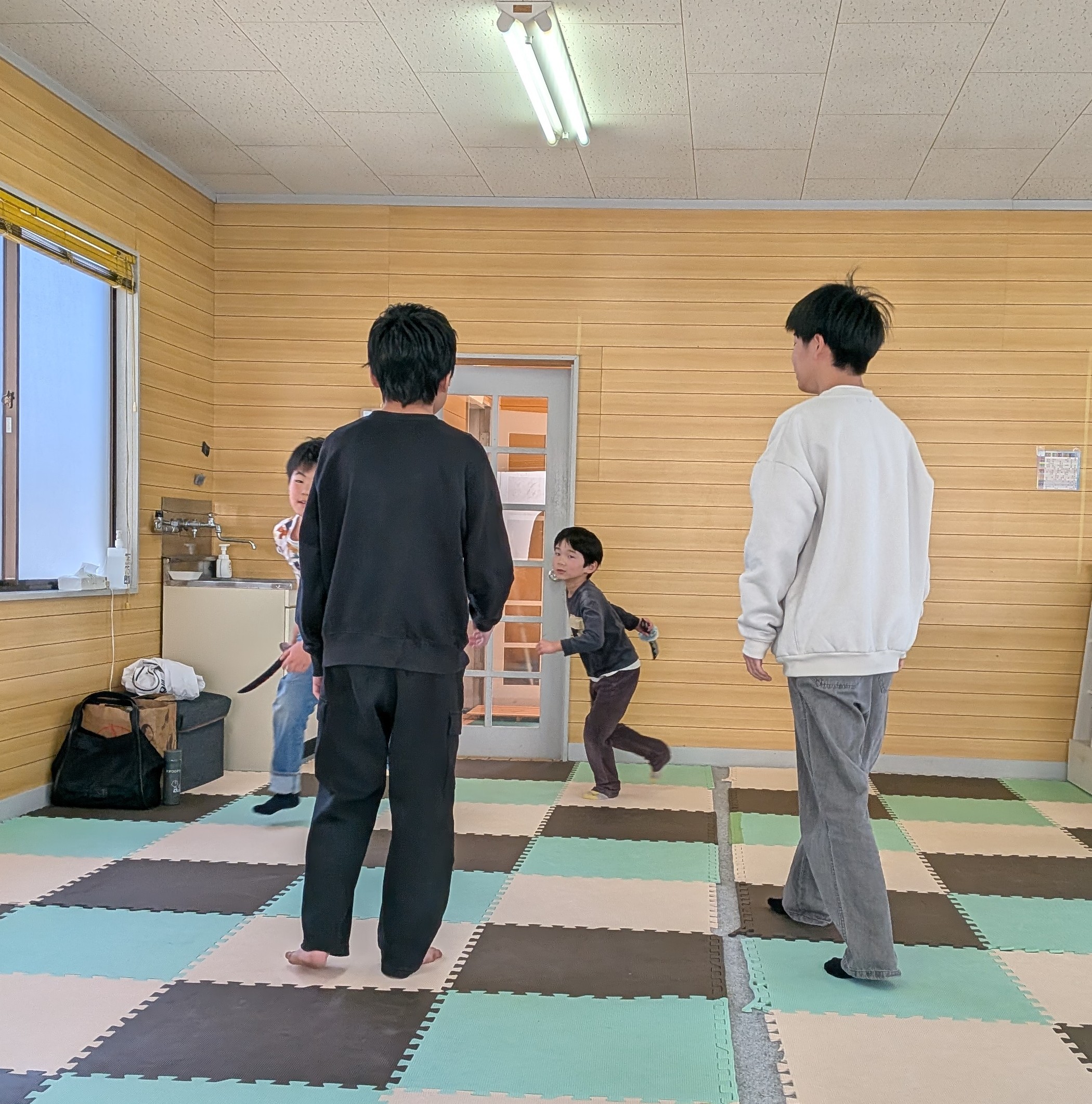 午後は室内で鬼ごっこやチャンバラで、汗をかきました!