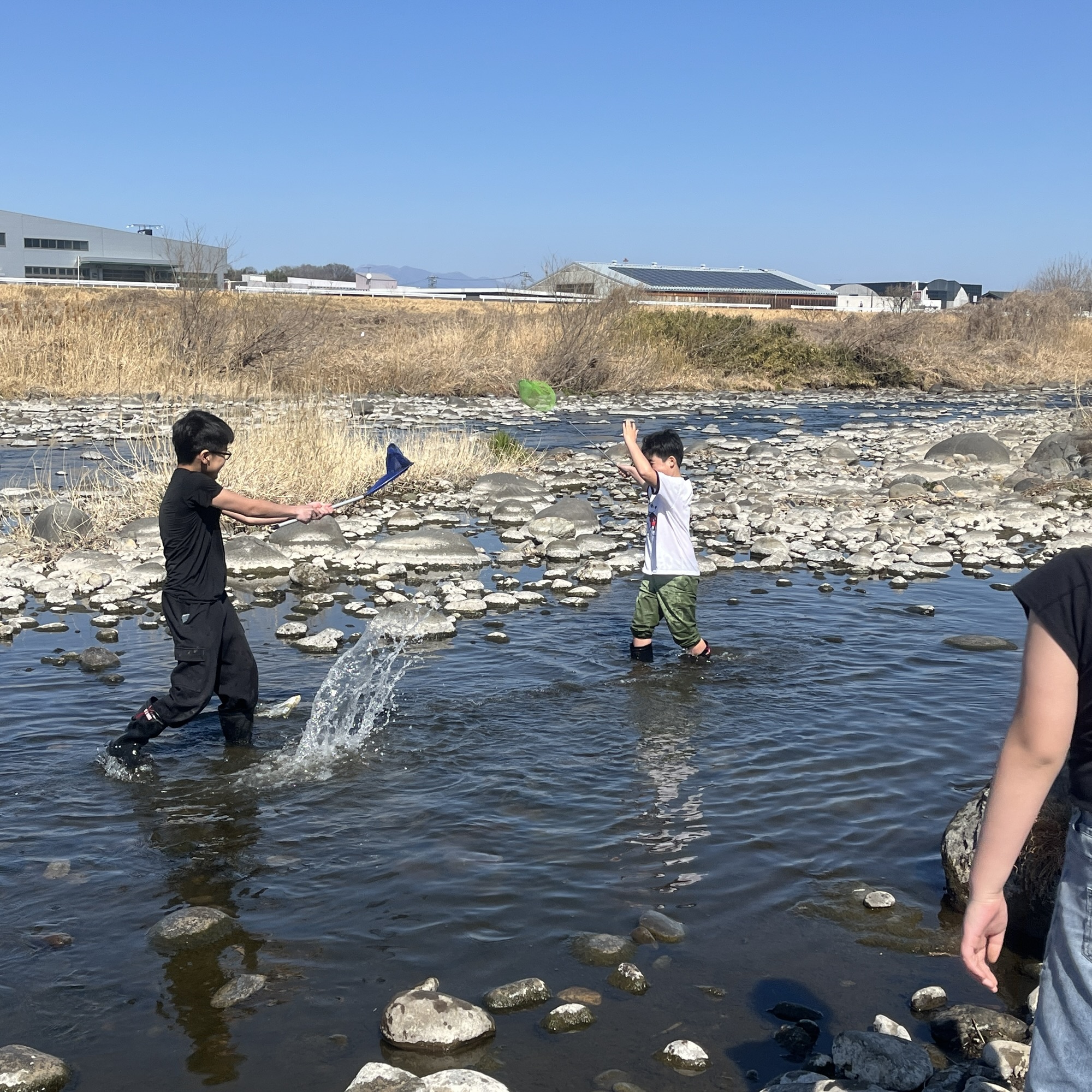 公園で遊んだ後は、川にいって、魚を捕まえたり、石を投げて水飛沫を立てて楽しんでいました。