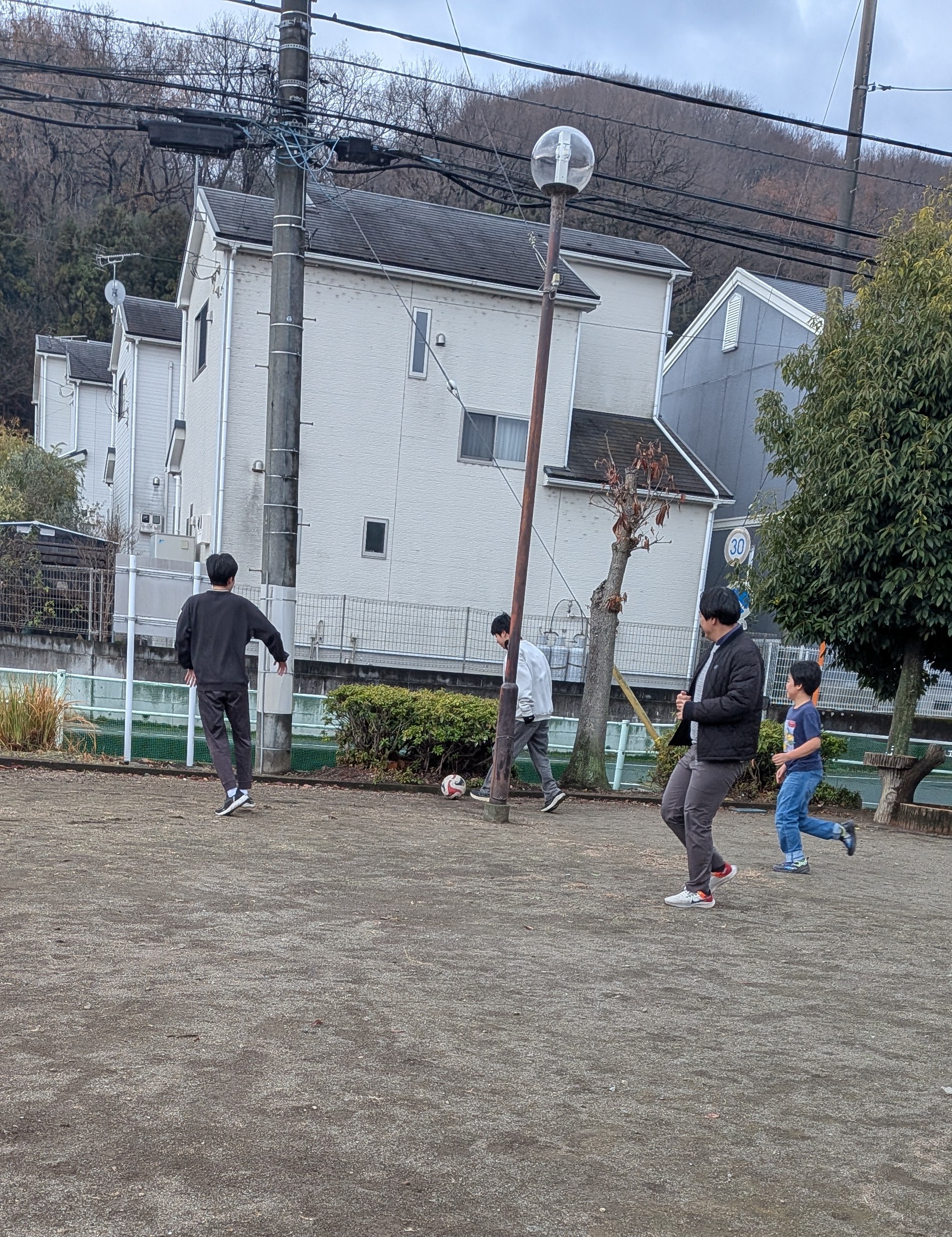 お腹がいっぱいになったので、近くの公園へサッカーをしに行きました。