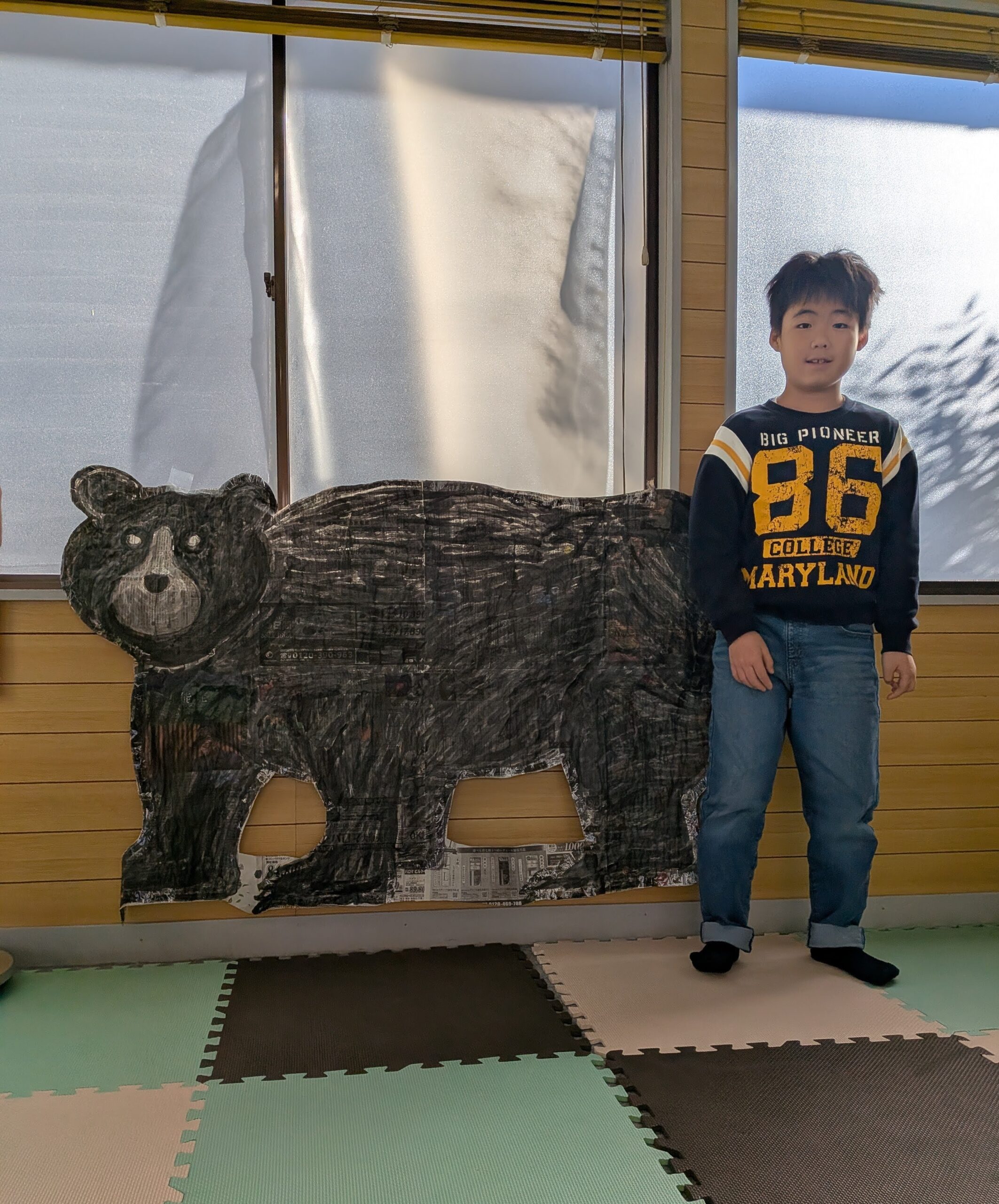 等身大のツキノワグマの絵に、並んでみると意外に大きい!
